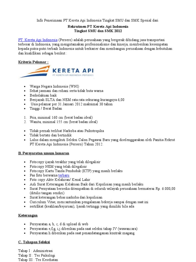 Rekrutmen Pt Kereta Api Indonesia Pdf